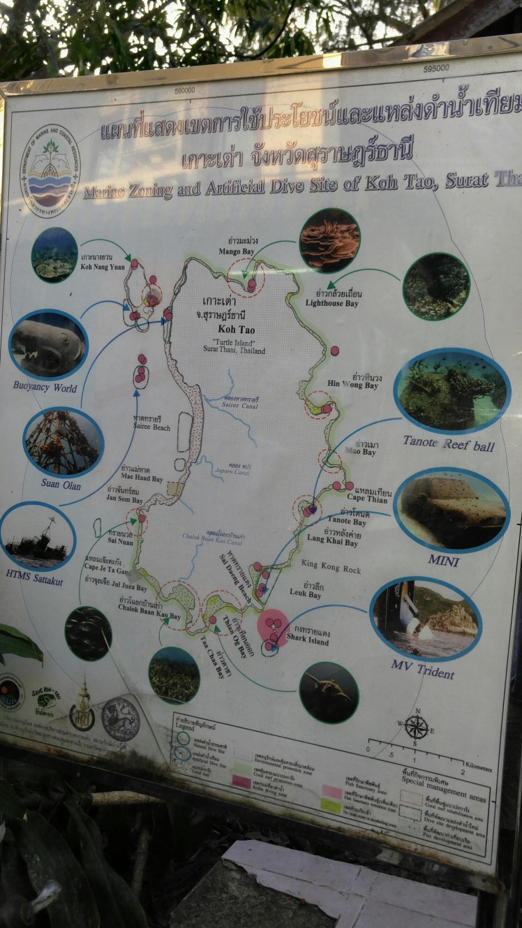 Both Jeanette and I were relunctant about scuba diving, but decided that neither of us would be first to chicken out.  We signed up with the Ocean Sound Diving School on the island of Koh Tao for their four day open-water certification course (Ocean Sound was the top-rated on Trip Advisor).  Koh Tao is known for being the cheapest place in the world for scuba certification.  The whole economy of the island is centered on scuba diving with there being over 50 dive companies there.