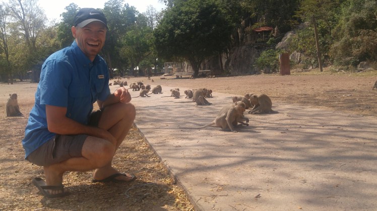 The first adventure that our host, Pong, took us on was a trip to the Monkey Temple (with caves). On the way there, Pong laughed at the idea of feeding bananas to Monkeys saying that “monkeys eat rice; they no like banana”.