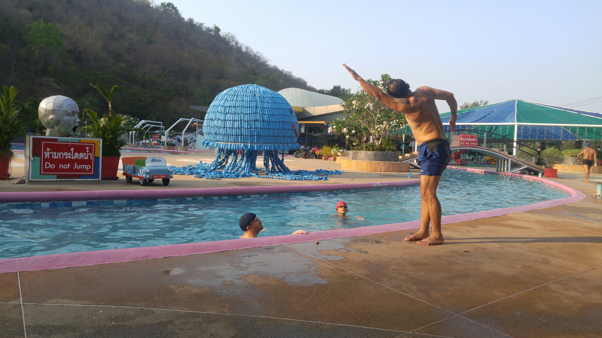 The water park was very basic but still very enjoyable- I unwittingly went down the 1 large water slide once to learn it gave you quite the beating. After being thrown across the water and then dunked in, I decided to stick to the lazy river. Jason braved the water slide a few more times with Takhee.