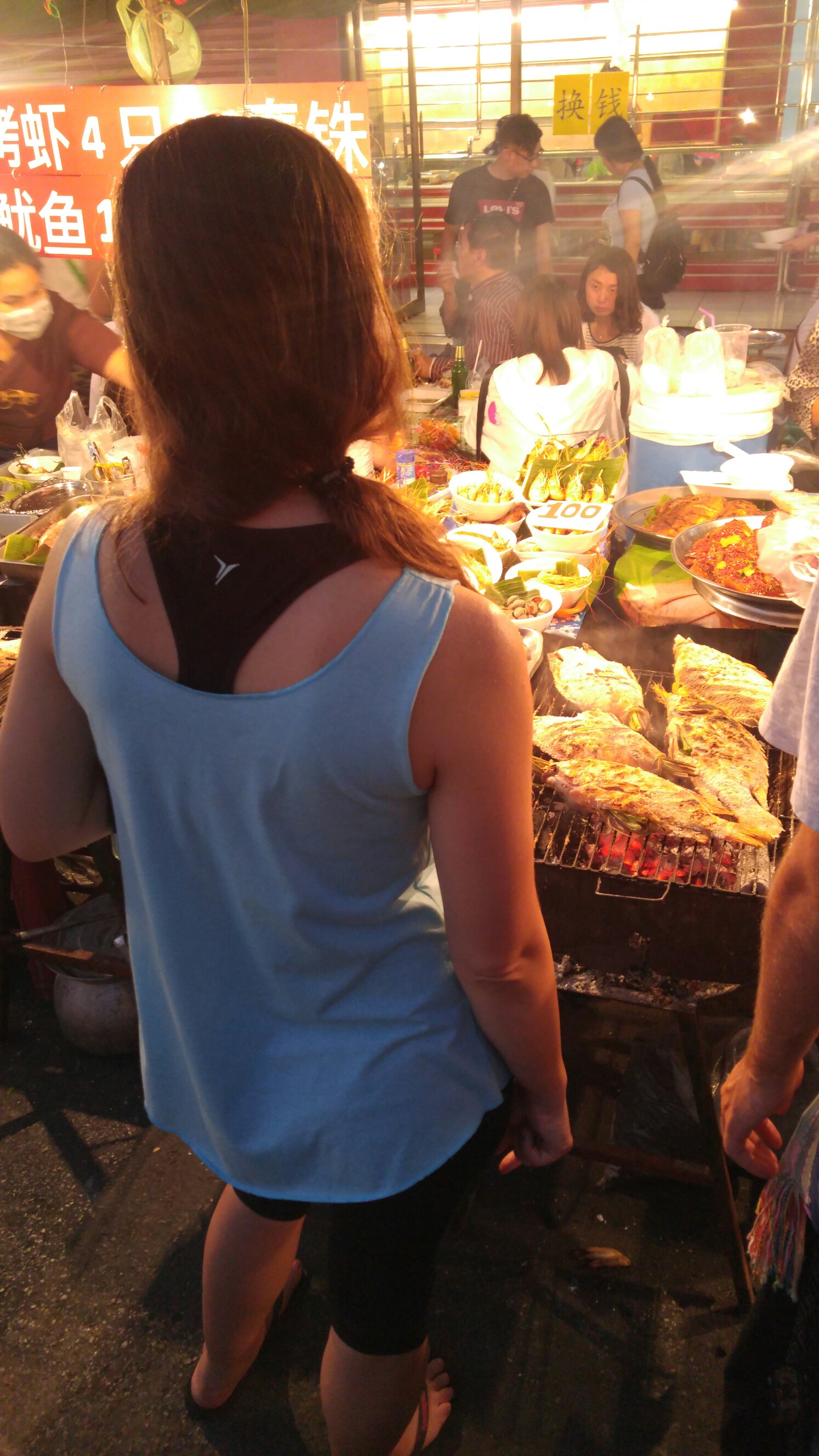 She failed to haggle down the cost of the fish cooking on the grill in front of her. She ended up walking away as a last effort to get the guy to come down. We will just have to pay full price next time.
