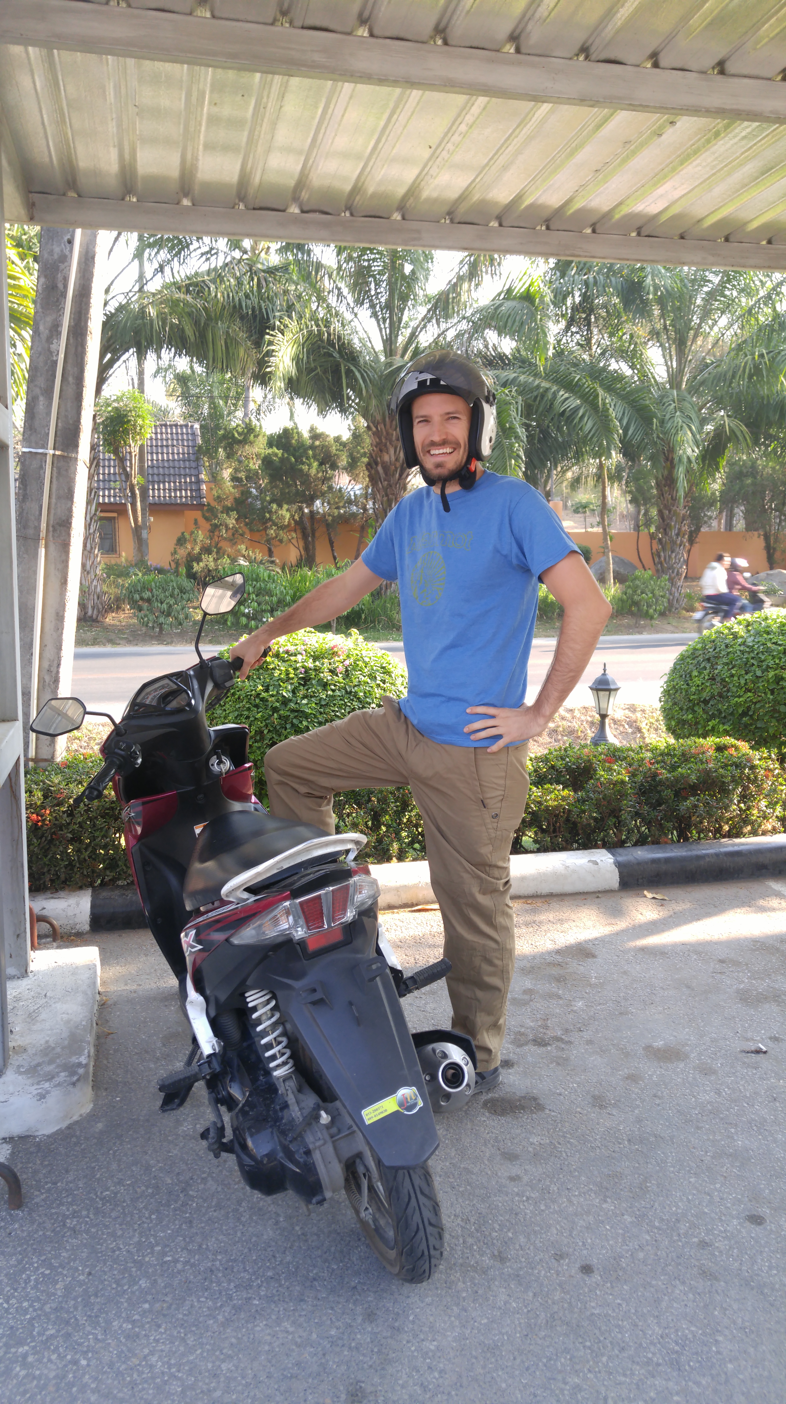 The first whole day that we were in Chiang Mai was more of a lazy day.  We spent time looking at the many different things to do and exploring Old Towne Chiang Mai.  After booking zip lining and a cooking school for days 3 and 4, we decided to rent a scooter (for 200 baht) that evening to go on our self-guided day-trip for day 2.  The hostel owner was pretty nervous (and rightfully so) for us because we both admitted that we had no experience on scooters.  It was a scary day…