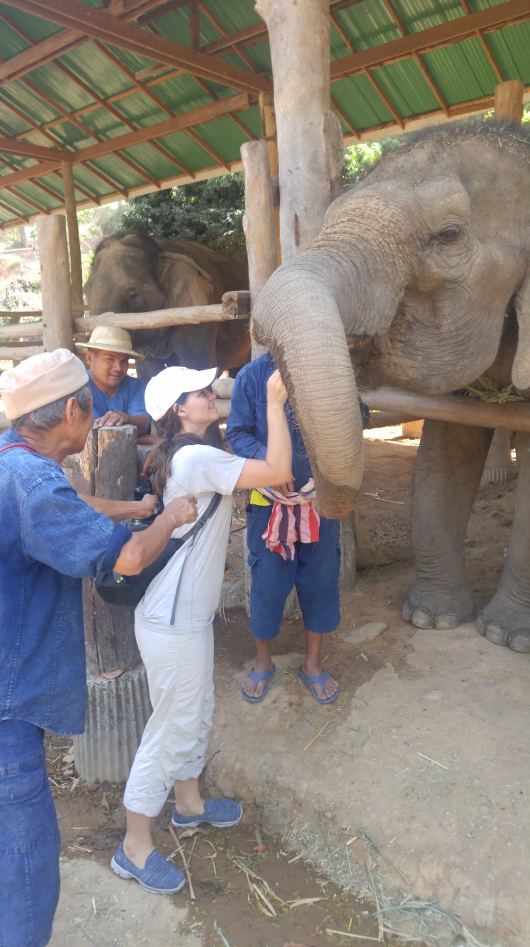 The second stop was an elephant care center where elephants go after retirement.  The oldest elephant there was 91 years old – see if you can guess which one that is.  Another elephant they called “Lady-boy” because he was a male without tusks – the workers really got a kick out of this.  I think I enjoyed feeding them more than Jeanette; she was a little nervous when she was close to them.
