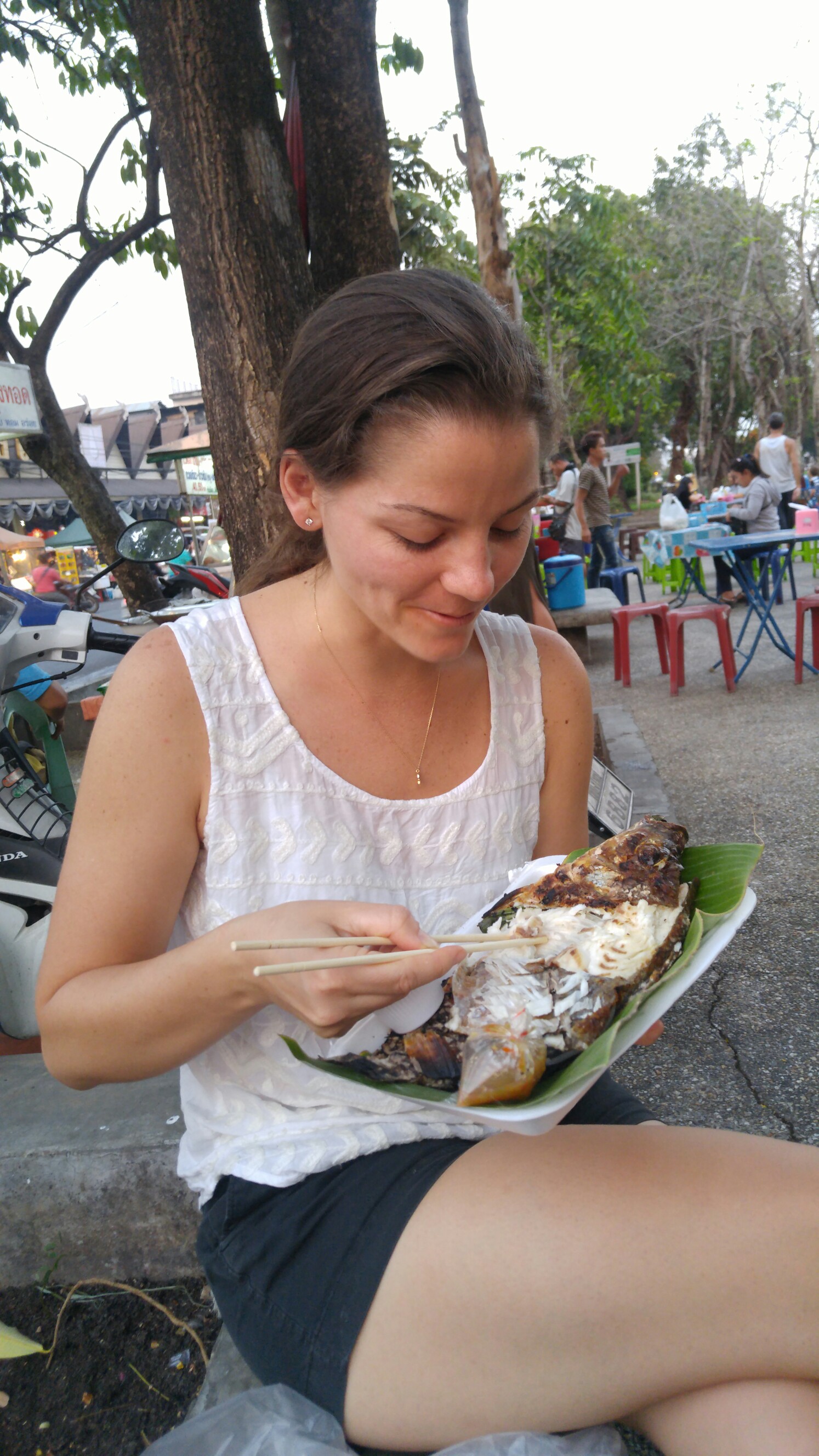 We visited another night market that evening where we had a smoothie by Pa (Jeanette reads about her in a blog and had to have one of her smoothies) and Jeanette finally got her a whole fish grilled. She had been eyeing them for the last couple of days, but kept walking away due to the prices being too high.