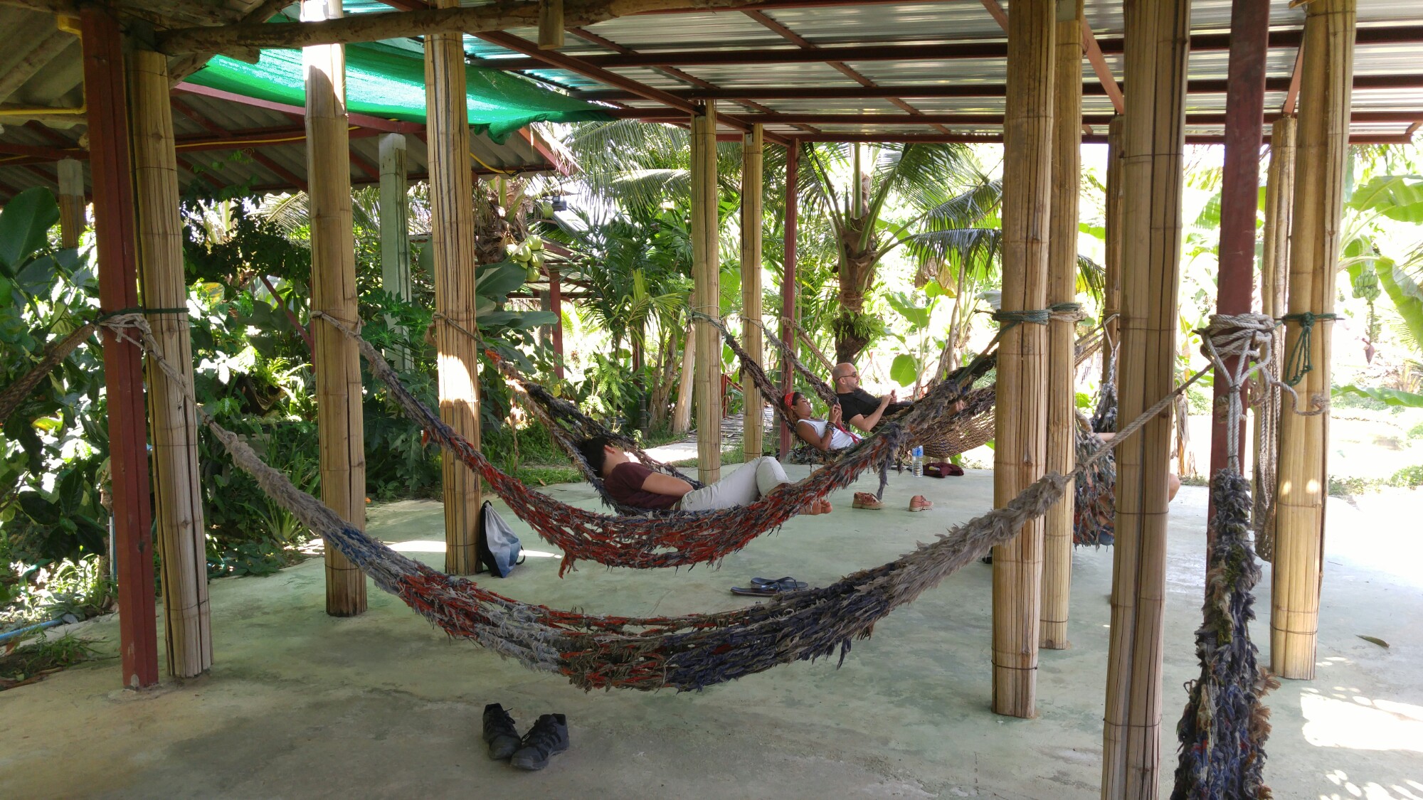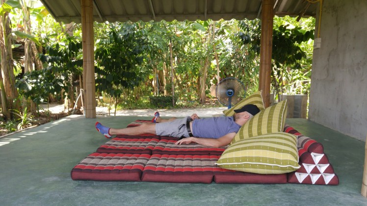 Once those 3 dishes were prepared we sat down to have lunch which was followed by a substantial break/nap time of lounging in his courtyard on hammocks. After lunch we did the appetizers and dessert of fried spring rolls and mango sticky rice. Personally, I loved the coconut chicken soup and the mango sticky rice. Jason liked the pad thai best.