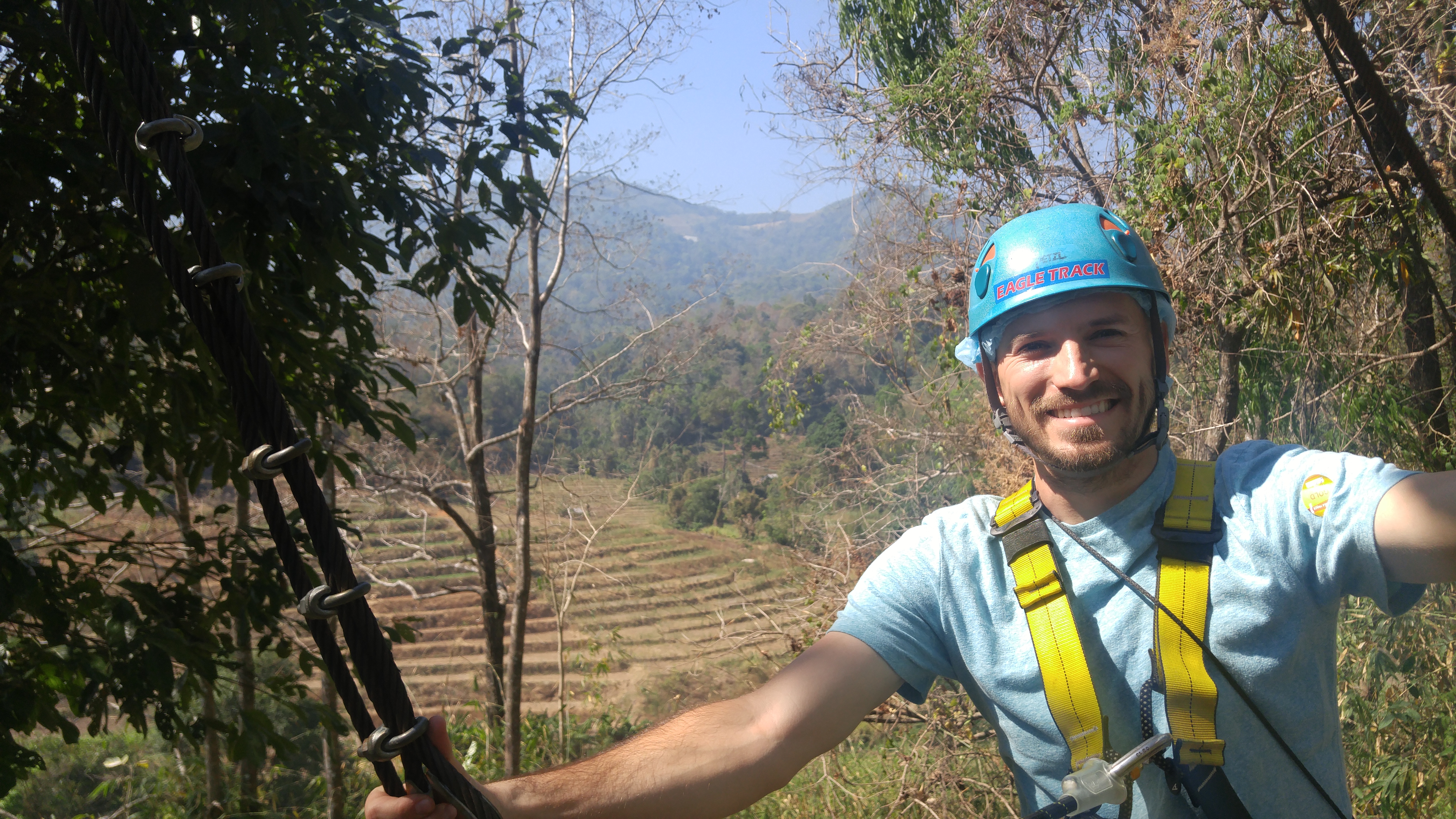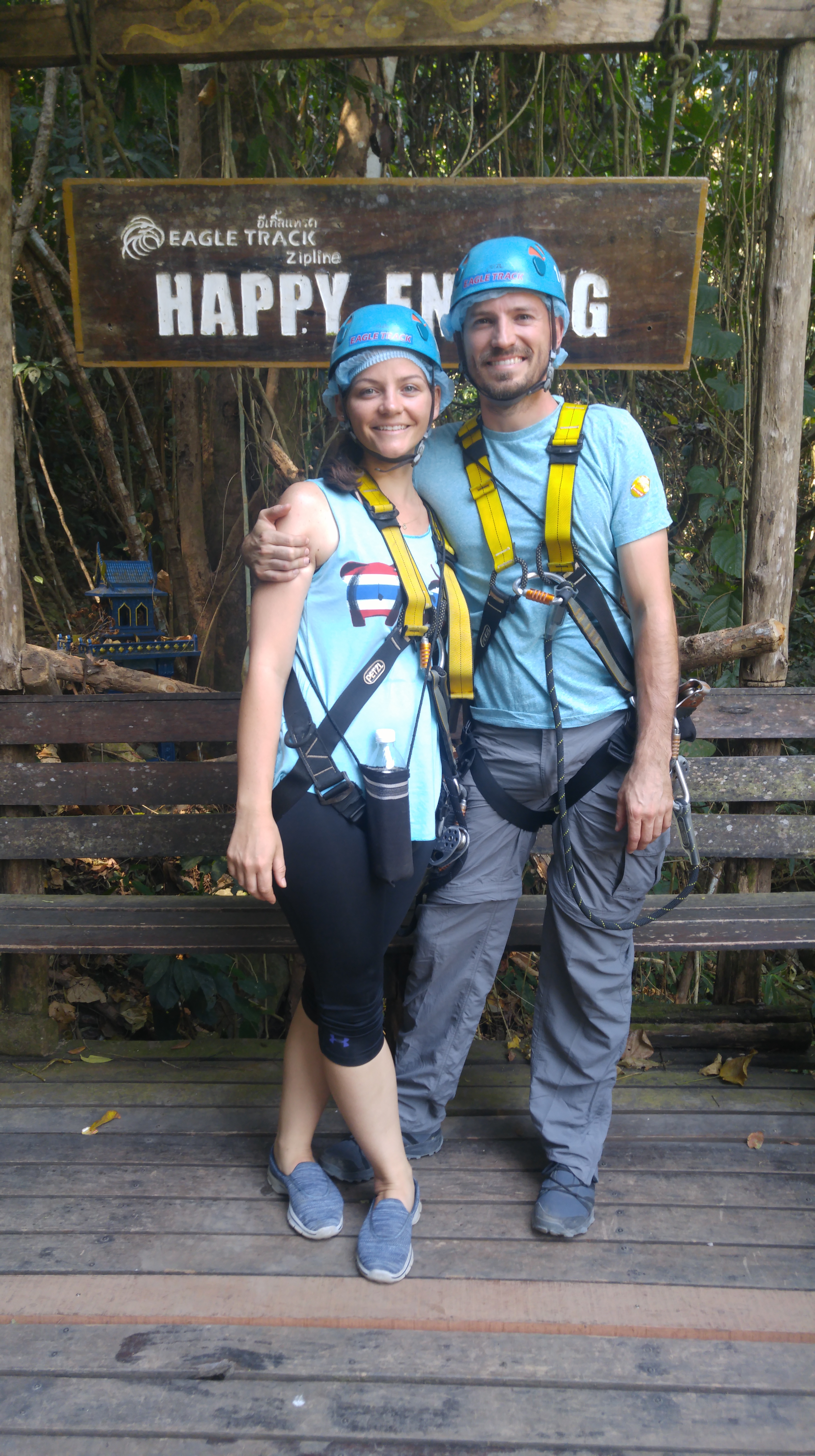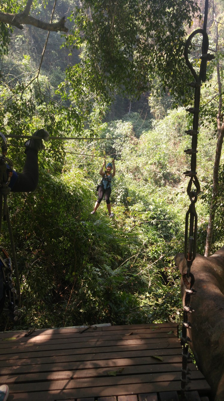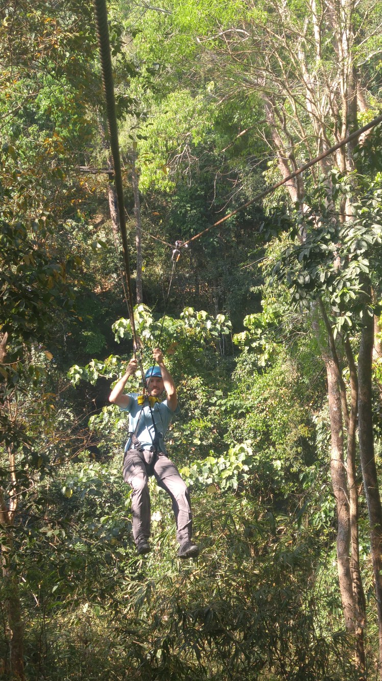 On day 3 in Chiang Mai, we booked a ziplining adventure at a cost of 1900 baht per person (or about $55). The course was made up of 35 platforms and took about 2.5 hours to go through – probably 4 sections of obstacles and 4 straight drops with the rest as ziplines. I was very impressed with our guides. We were 100% tied off at all times, and they did all of the fastening to make sure it was done correctly.