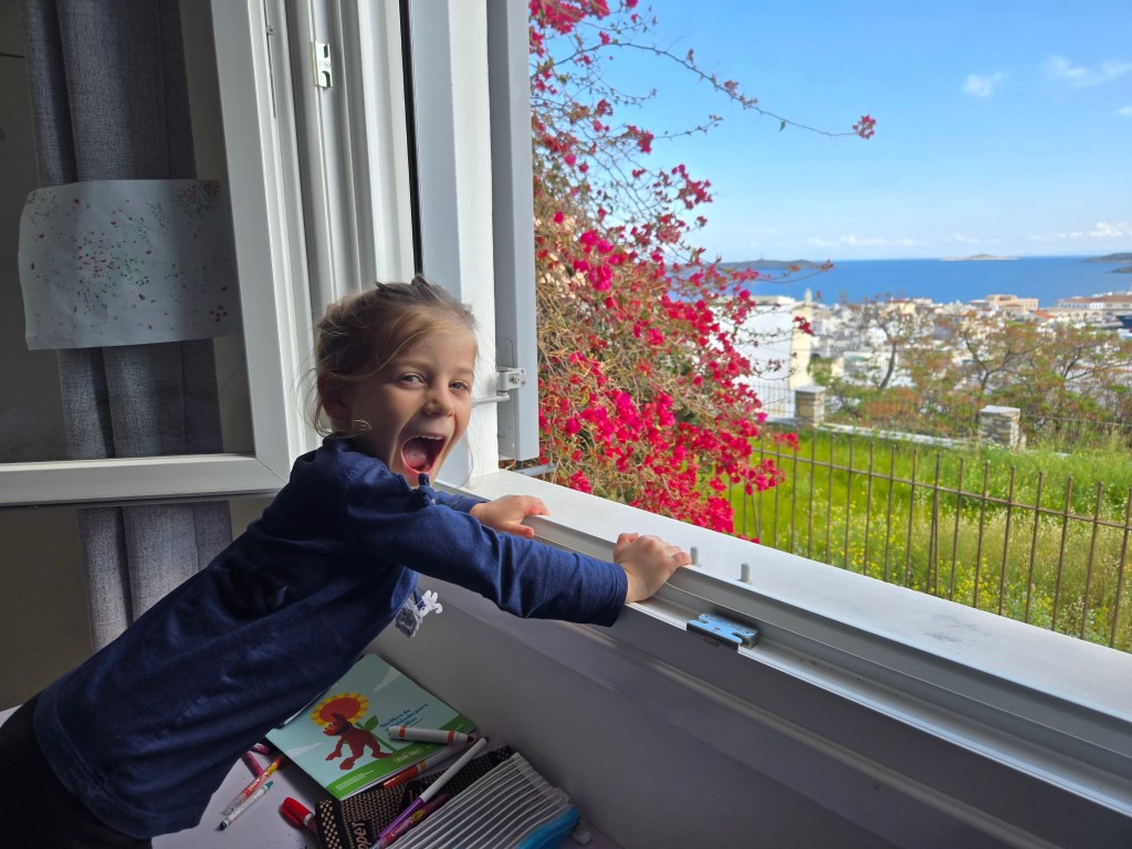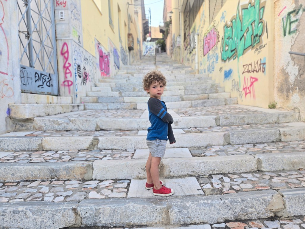 Our chosen Boundless apartment ‘Hera’ is in a pretty great location, situated perfectly between the kid’s school and the main square. This encourages the perfect amount of walking in our day.