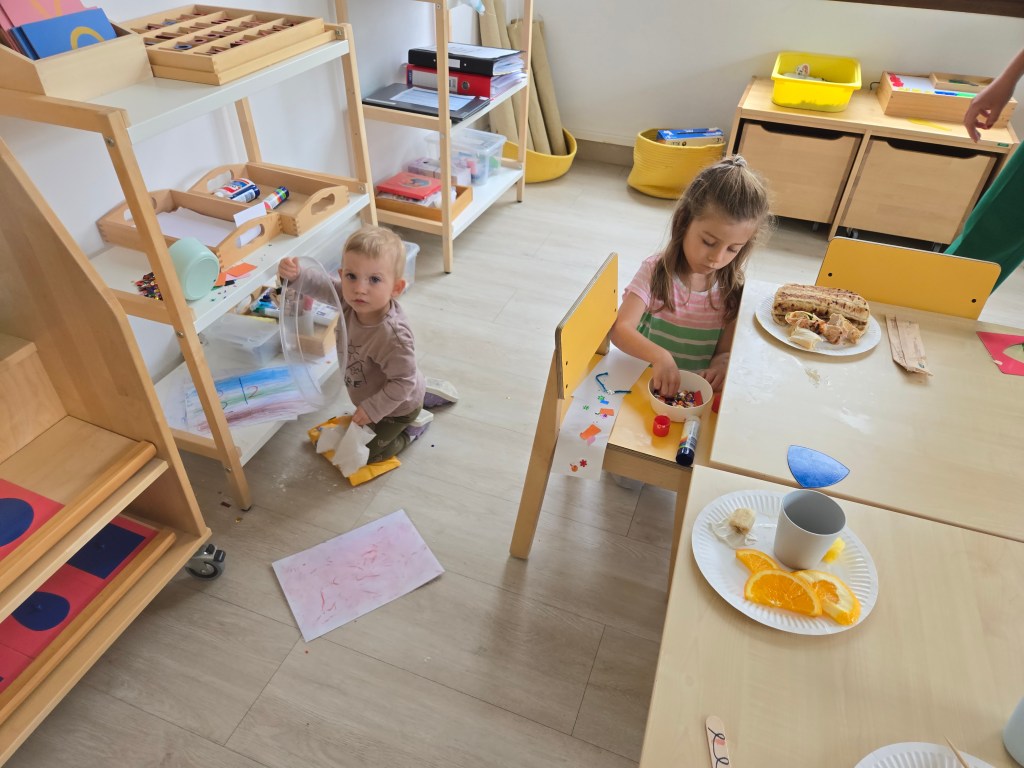 Orientation Day at the school. This involved a 45 minute trial run where we dropped the kids off in their classrooms and went to listen to a presentation. Poor Jenna I think cried the full time but once we returned she could enjoy exploring the classroom.