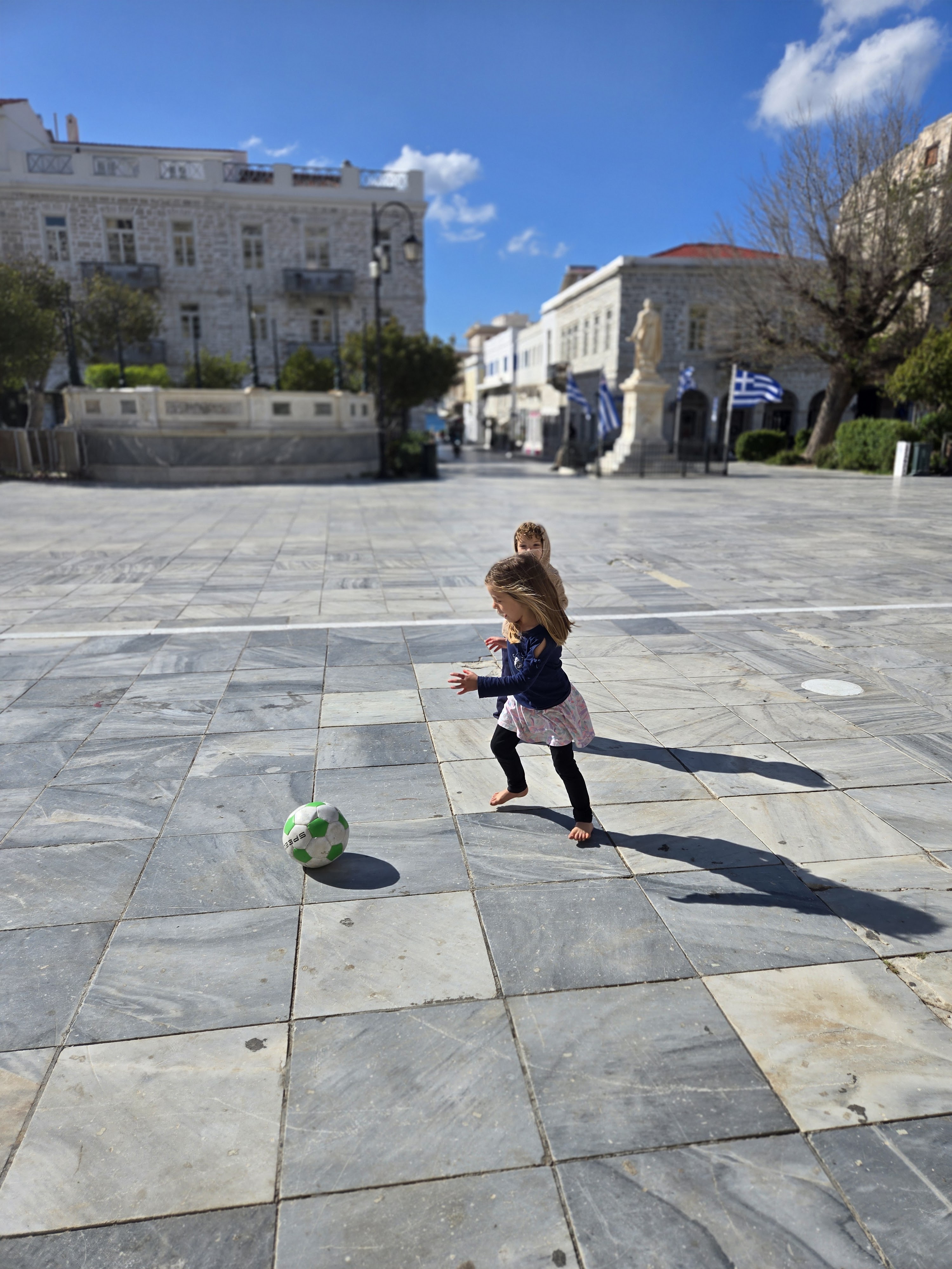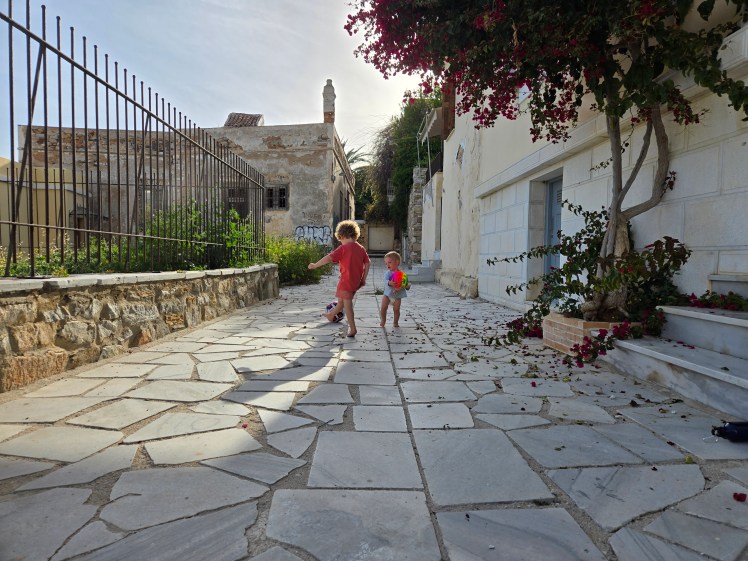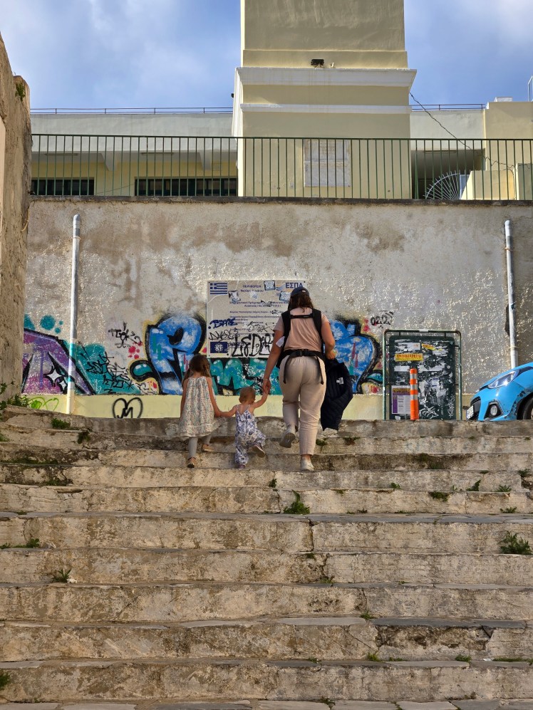 The main city square where everyone congregates to eat, chat, play sports, and ride scooters. Apparently Ermoupolis, Syros is home to the largest city square in Greece and this quickly became our kids favorite place to go hangout and see friends. ]